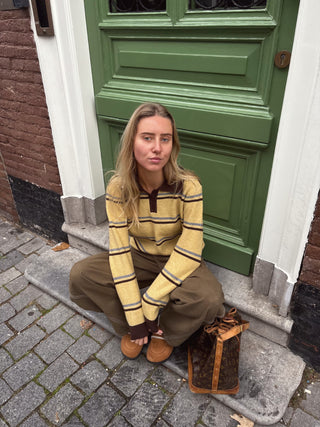 Viral Stripes Polo Sweater Yellow Brown